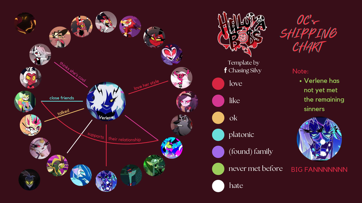 Verlene, a name of French and German origin, carries significant meaning in both languages. In French, it is a variant of Veronique, meaning "bringer of victory", while in German it is derived from Verena, meaning "protector". These dual meanings evoke a life filled with strength, power, and prosperity.Source: The BumpResiding on the Envy Ring and working at Valentino's club on the Pride Ring, Verlene, stands out with her charm, easily attracting customers during her shifts with her bioluminescent abilities. Although she does not have an official contract with Valentino, she still maintains a prominent position at the club, even ranking just below famous employees such as Angel Dust. She simply works at the club because she wants to find new joy.Verlene's pleasure lies in belittling and destroying others and taking what they possess. In her human life, she resorted to submerging her superiors to climb up, her desire for power driving her actions. However, her insatiable jealousy eventually led to her death, as she found no satisfaction in her conquests. She believes that death can bring her a new form of perverse pleasure.Despite her reputation for jealousy, Verlene's roots lie in a childhood of deprivation and dependency. Raised by her mother in the absence of her addicted father, she is always jealous of those with greater fortunes. Driven by a desire to surpass her humble beginnings, Verlene yearns for more, constantly climbing the social ladder.